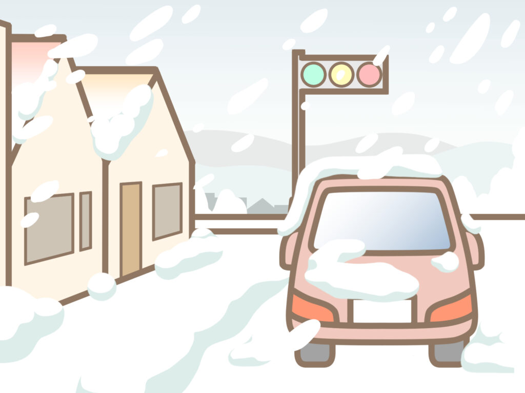 車ででかけると 立往生(たちおうじょう:道路で 長い時間 動けなくなること)するかもしれません。